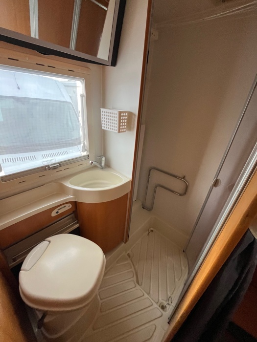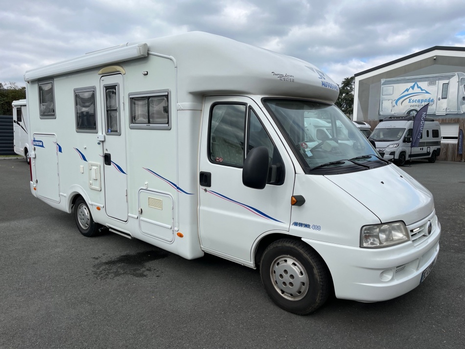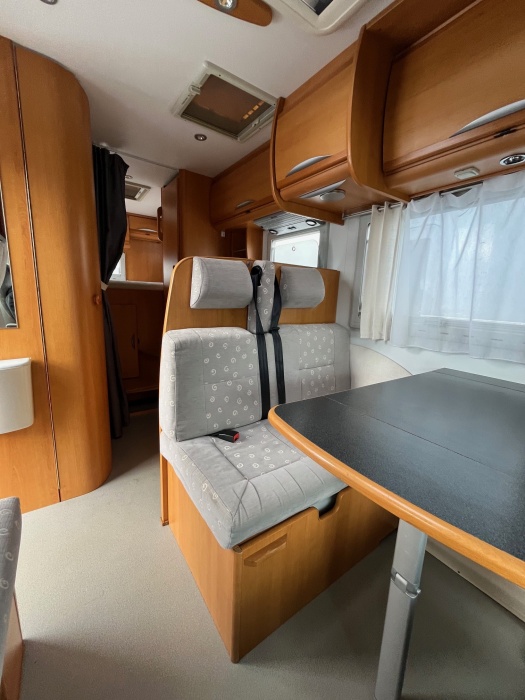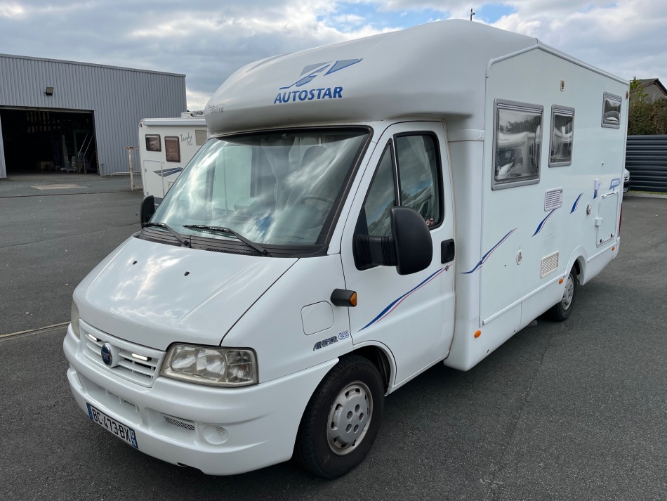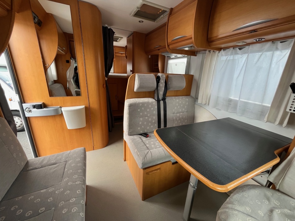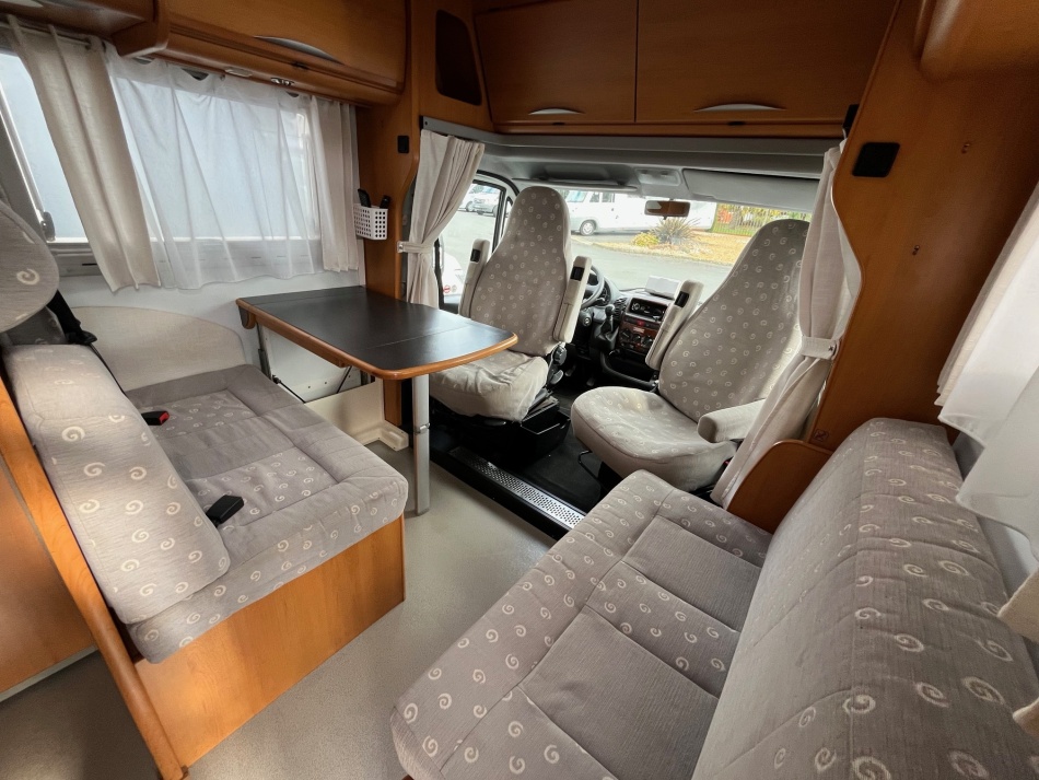 EQUIPEMENTS DE SERIE : Porteur: FIAT DUCATO 2.8 JTD 145 CH 09 CV AOUT 2005 140 000 kms 4 places carte grise contrôle technique contrôle d'etanchéité entretien présent historique présent préparation esthétique complète radio Dimensions : L x l x h : 6.60 x 2.30 x 2.79 m Espace couchage : Lit arrière sur soute (140x210) lit dinette 4 couchage grande soute grand espace douche- toilette Cuisine avec réfrigérateur (gaz/220V/12V) salon avec sièges avant pivotants Nombreux rangements -placards -penderie chauffage ALDE CHASSIS ALKO Options : TELEVISION antenne manuelle serrures de sécurité store banne panneau solaire porte vélo ATTELAGE