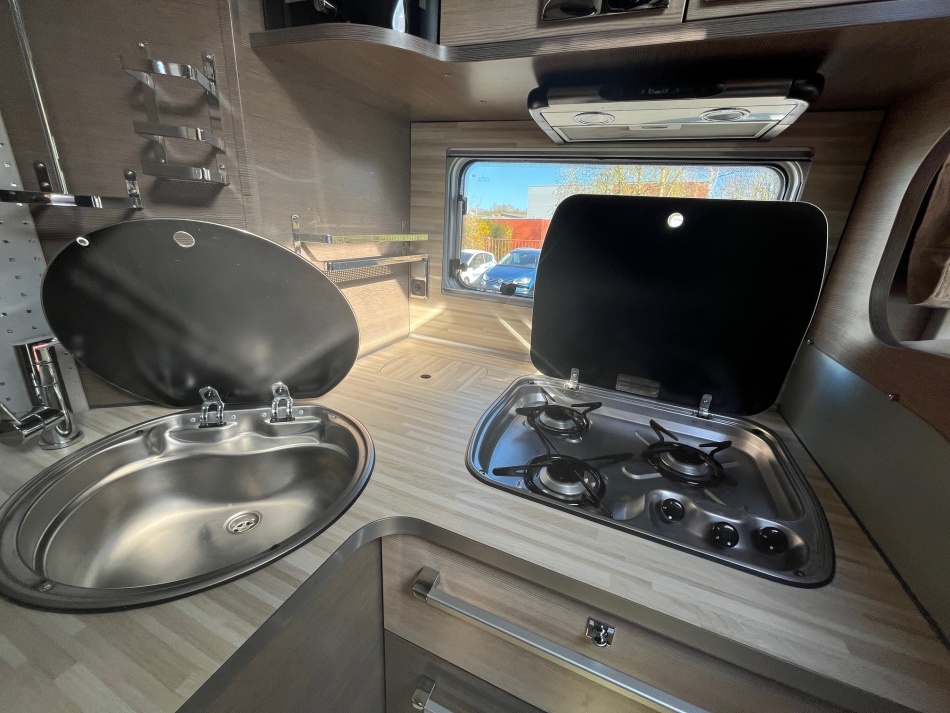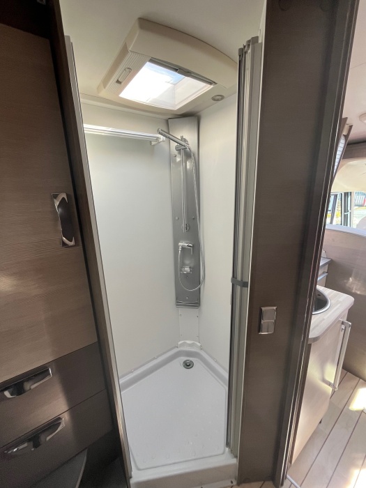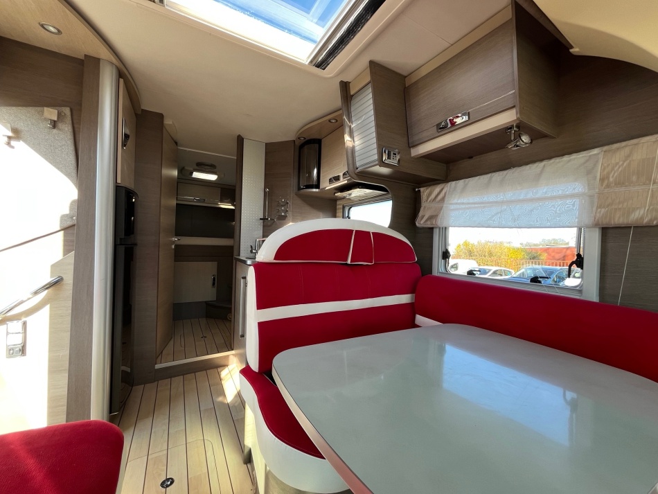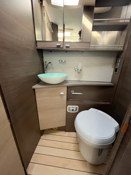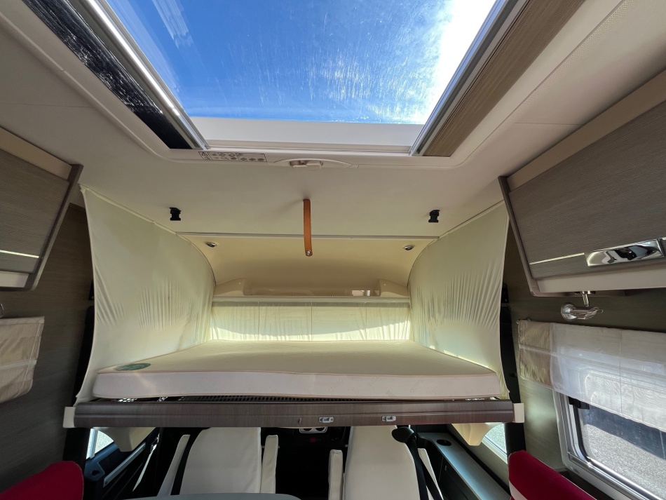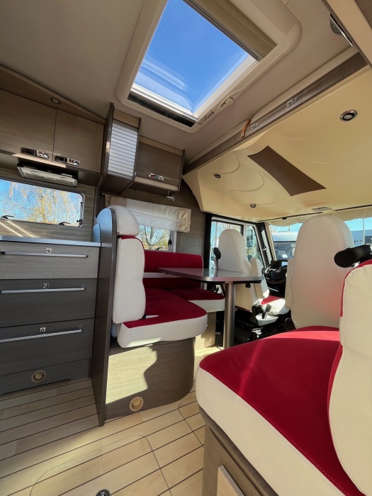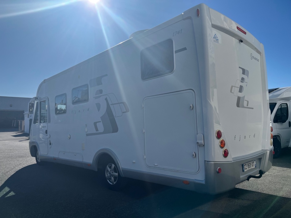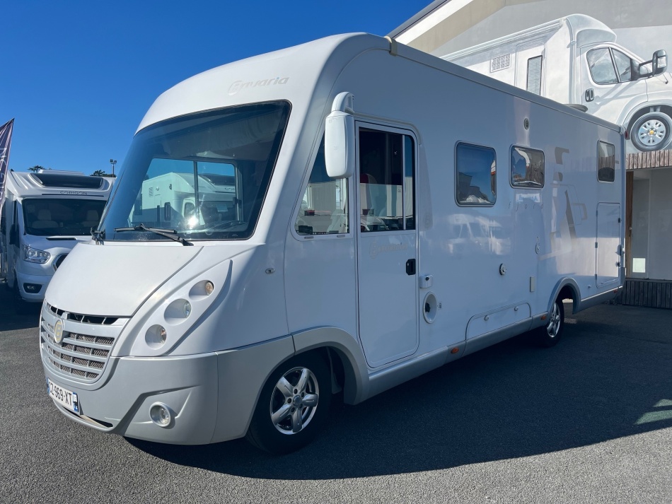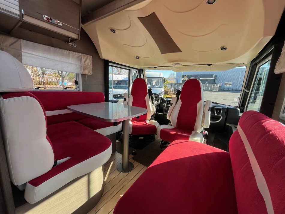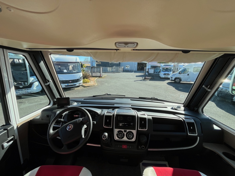 EQUIPEMENTS DE SERIE : 3 PLACES CARTE GRISE 4 COUCHAGES: Lit permanent arrière (140 x 190 cm), Lit de pavillon (135 x 190 cm) cuisine avec 3 feux hottes réfrigérateur 160 litres tri-mixtes Douche et cabinet de toilettes séparés COMBINE CHAUFFAGE - EAUX CHAUDE TRUMA Grande soute garage avec porte vélos intégré Télévision avec parabole Store banne ATTELAGE CHASSIS AL-KO CARROSSERIE ALUMINIUM JANTES ALU CLIMATISATION CABINE REGULATEUR DE VITESSE CAMERA DE RECUL