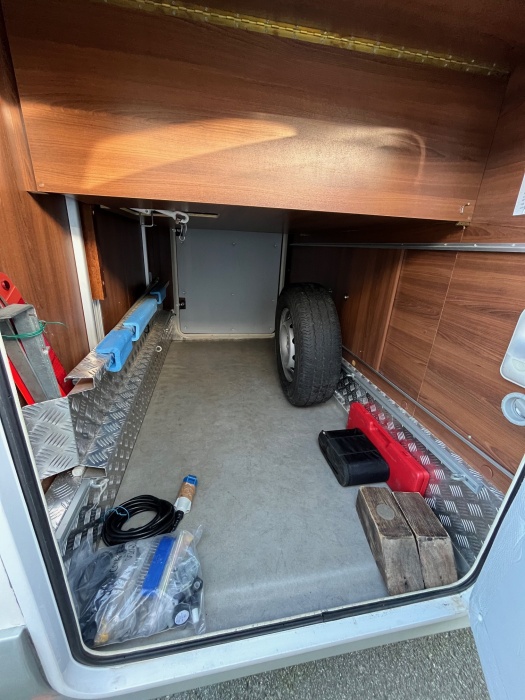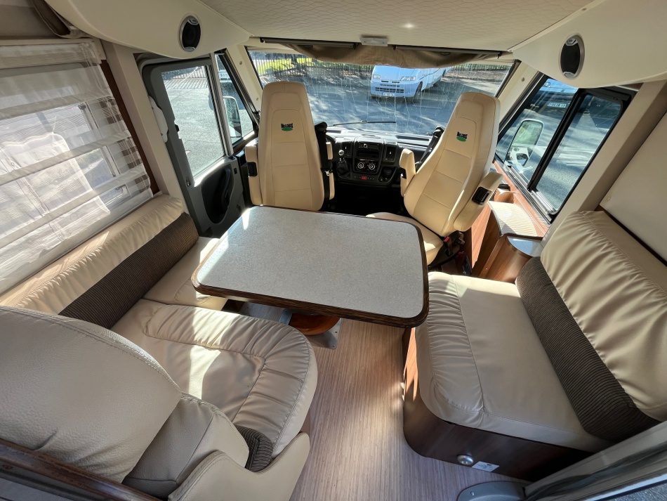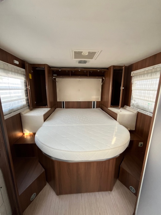 EQUIPEMENTS DE SERIE : 4 PLACES CARTE GRISE - 4 COUCHAGES CLIMATISATION CABINE REGULATEUR DE VITESSE TELEVISION PARABOLE FRIGO TRI-MIXTES GRANDE SALLE D'EAU AVEC DOUCHE SEPAREE LIT PAVILLON GRAND SALON CHAUFFAGE COMBINE TRUMA GAZ BATTERIES CELLULE PANNEAU SOLAIRE grande soute